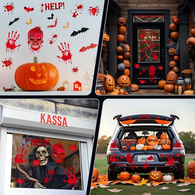 - Package: You will receive 6 Sheets window stickers with a lot of blood, about 68 stickers, sticker patterns include bloody handprints, bloody footprints, bloody shoe prints, skulls, etc