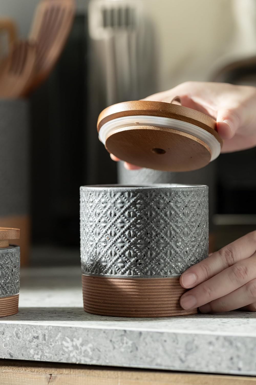 - Farmhouse Embossed Details: The intricate embossed patterns make this ceramic coffee canister a stylish kitchen addition—more than coffee bean storage, it's a tasteful decor