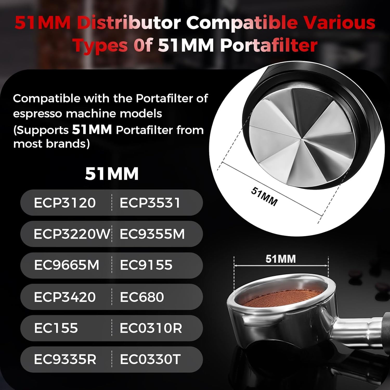 IKAPE 51MM Espresso Distributor, Dual-Bearing & High-Speed Rotation Coffee Distributor, Coffee Leveler, Espresso Tamper Tool, Adaptive Height Coffee Leveler