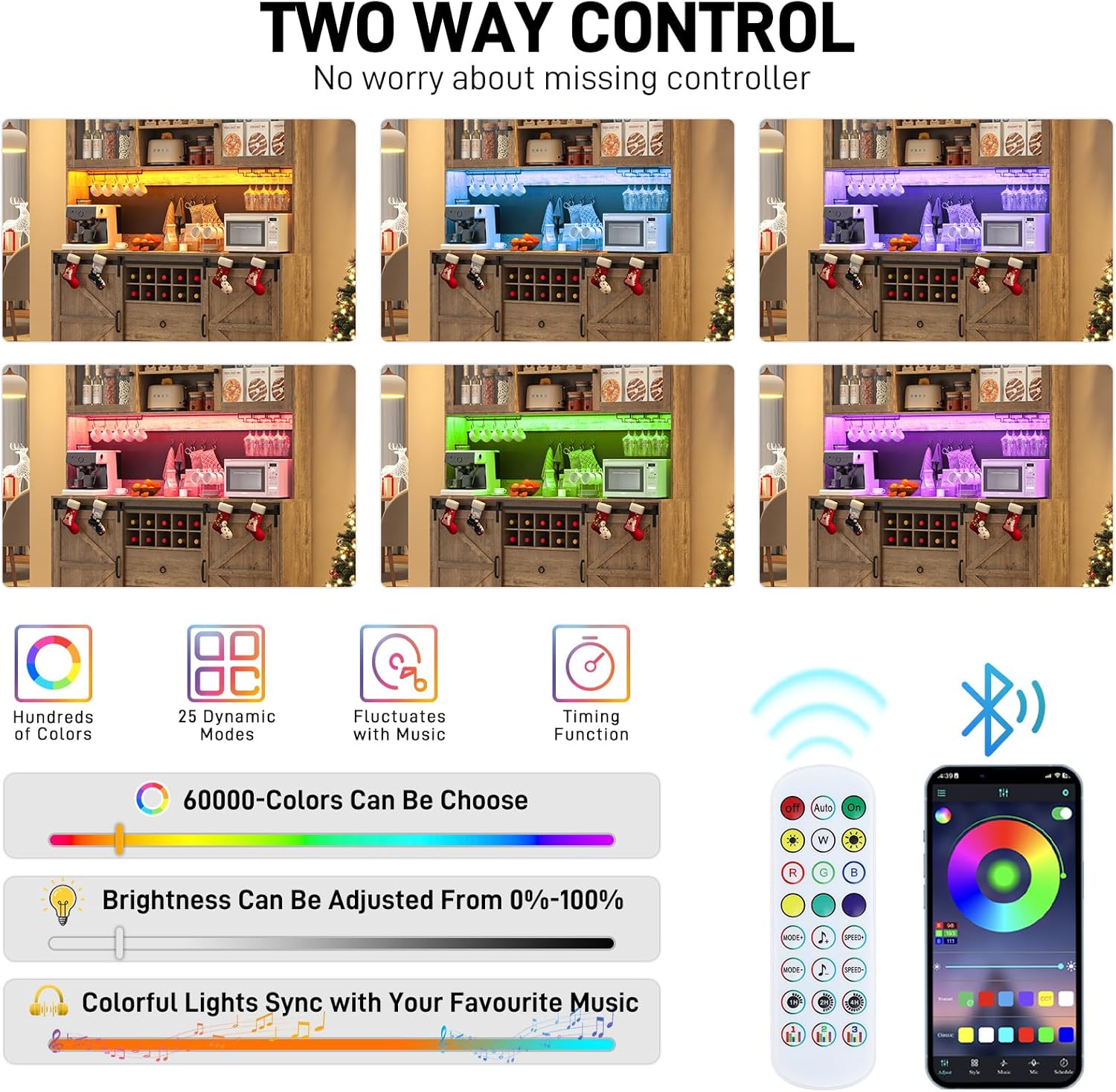- 【Gorgeous LED Party Ambiance】Elevate your party with our large storage bar cabinet's LED lights. Control 6000 colors, 29 modes, and sync with music/mic via app or remote. Surprise your guests and create the ultimate party experience