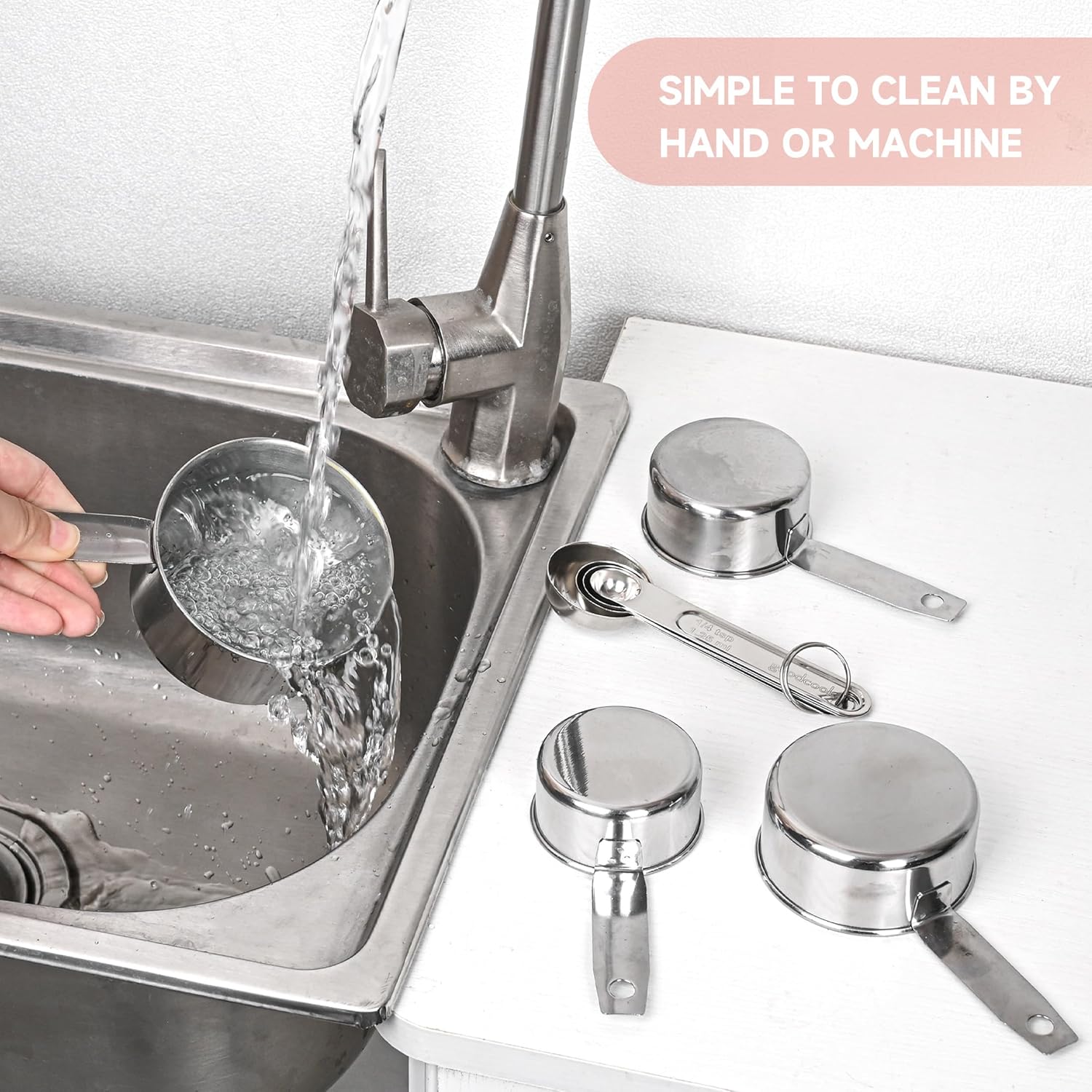 Measuring Cups and Spoons Set,Stainless Steel 8 Piece Nesting Measuring Tools for Dry & Liquid Ingredients, Kitchen Gadgets for Cooking and Baking, Includes 4 Cups and 4 Spoons