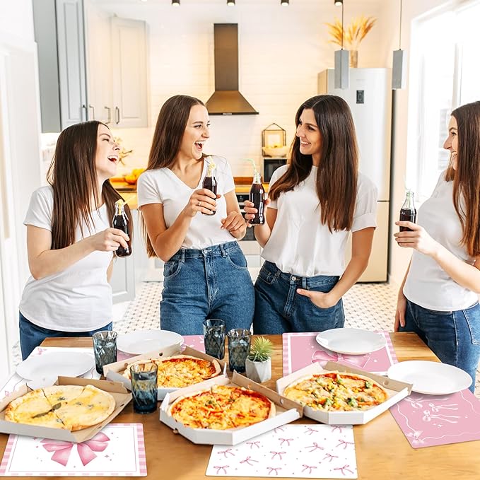 - Widely Applied: Our pink bow theme place mats are versatile and suitable for a wide range of occasions. Whether you’re setting the table for a Wedding, Bachelorette party,Baby Shower, Birthday Table Setting, these mats are the ideal choice. As part of pink bow party supplies, they add a touch of elegance, charm, and a cohesive pink bow theme to any setting, enhancing the overall ambiance and making your event truly memorable