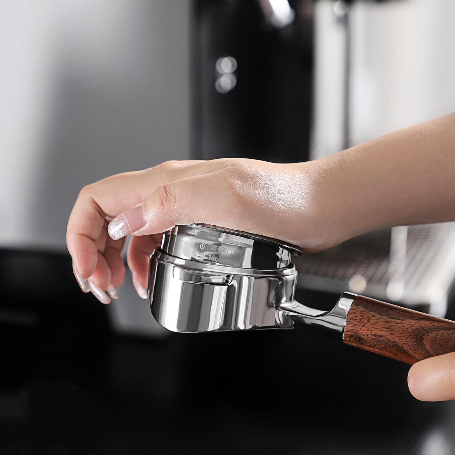 - Flat Bottom Straight-Wall Design – Promotes uniform water distribution and even extraction, reducing channeling and enhancing the rich, full-bodied flavor of your espresso.