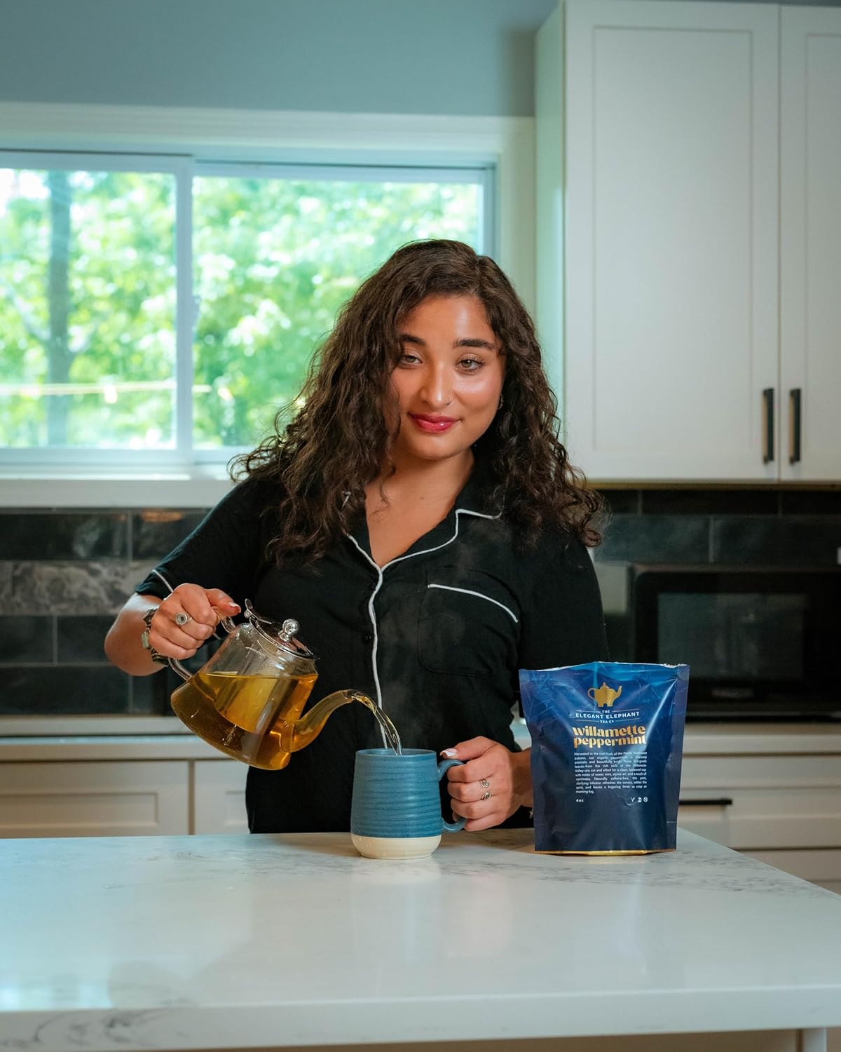 Willamette Peppermint Tea, Organic Loose Leaf Mint Herbal Tea – Soothing, Caffeine-Free – Refreshing Hot or Iced – 4 oz Resealable Bag (Makes 50 Cups) – The Elegant Elephant