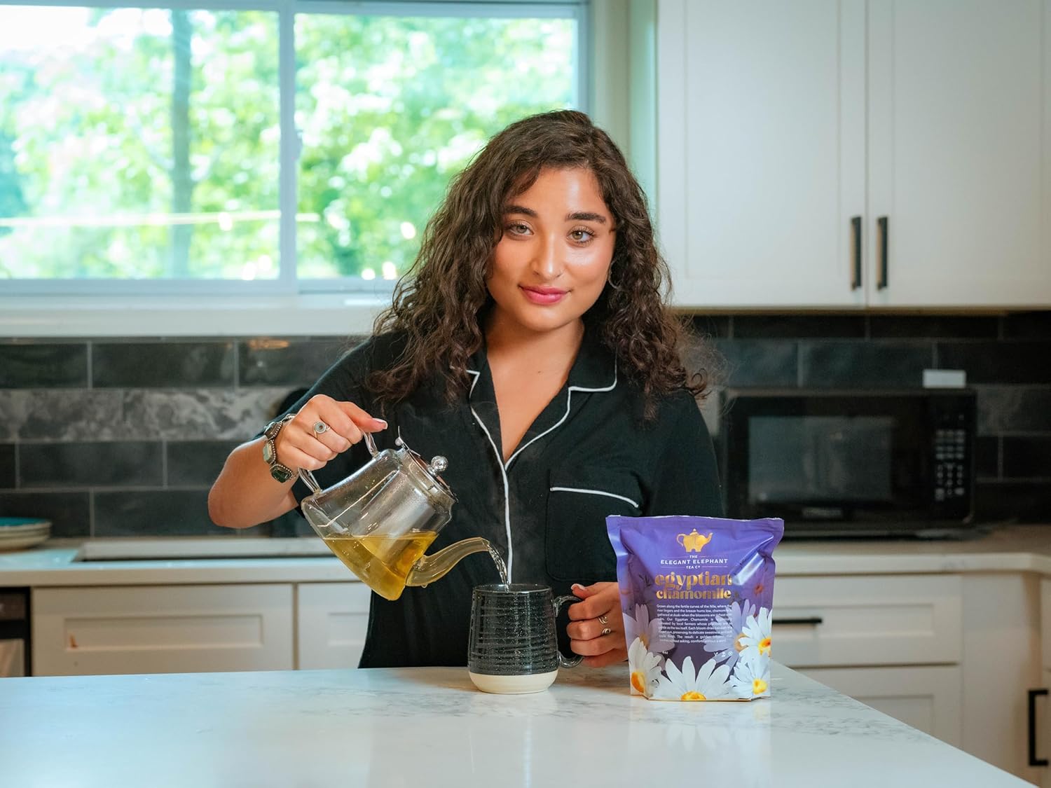 Egyptian Chamomile Tea, Organic Loose Leaf Herbal Tea – Cozy, Calming – Supports Stress Relief, Relaxation & Sleep – 4 oz Resealable Bag (Makes 50 Cups) – The Elegant Elephant