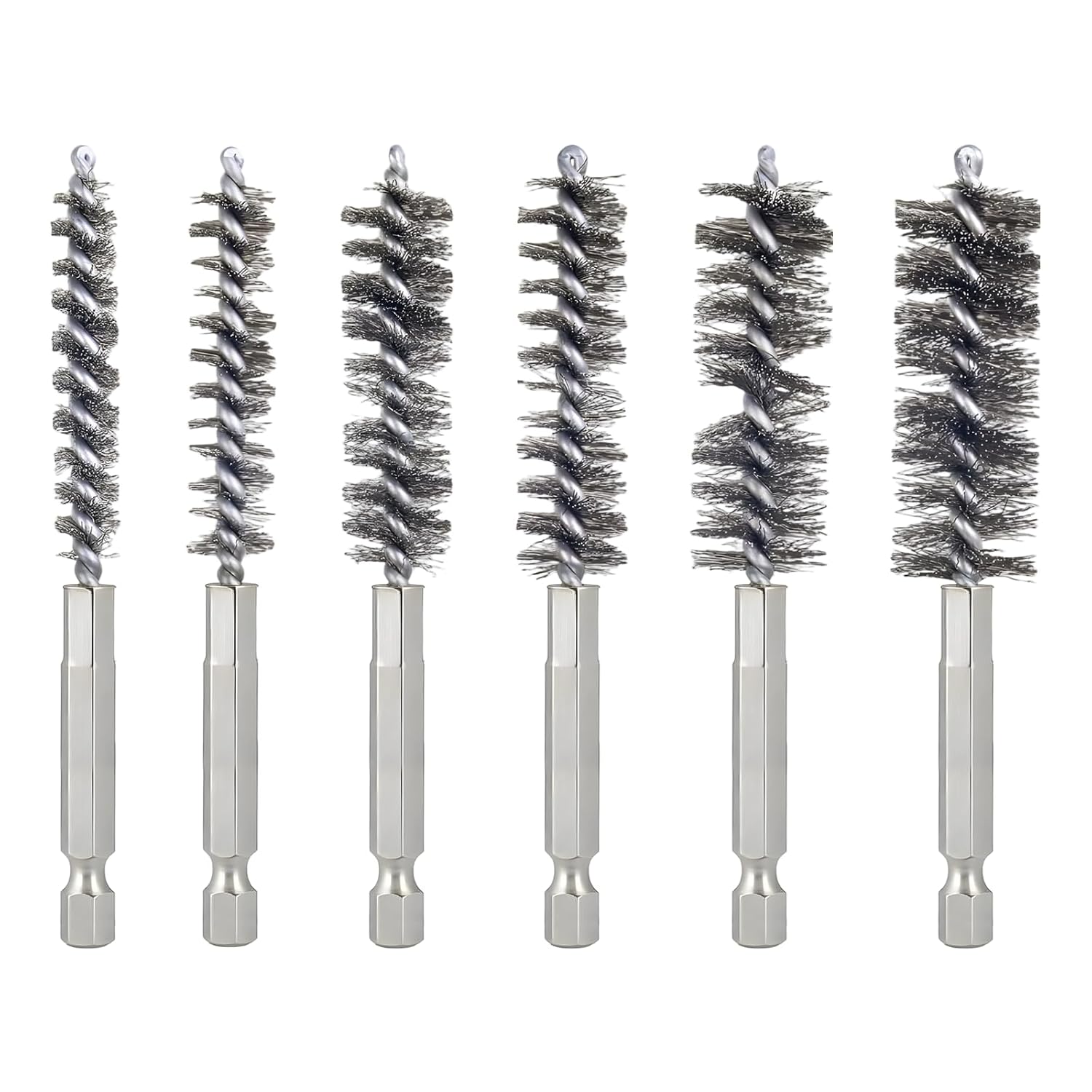 Bore Brush for Drill – 6pcs Stainless Steel Wire Tube Brush in Different Sizes, Twisted Wire Cleaning Brush with 1/4" Hex Shank, bore Brush Copper Pipe Cleaner for Power Drill & Tube Cleaning