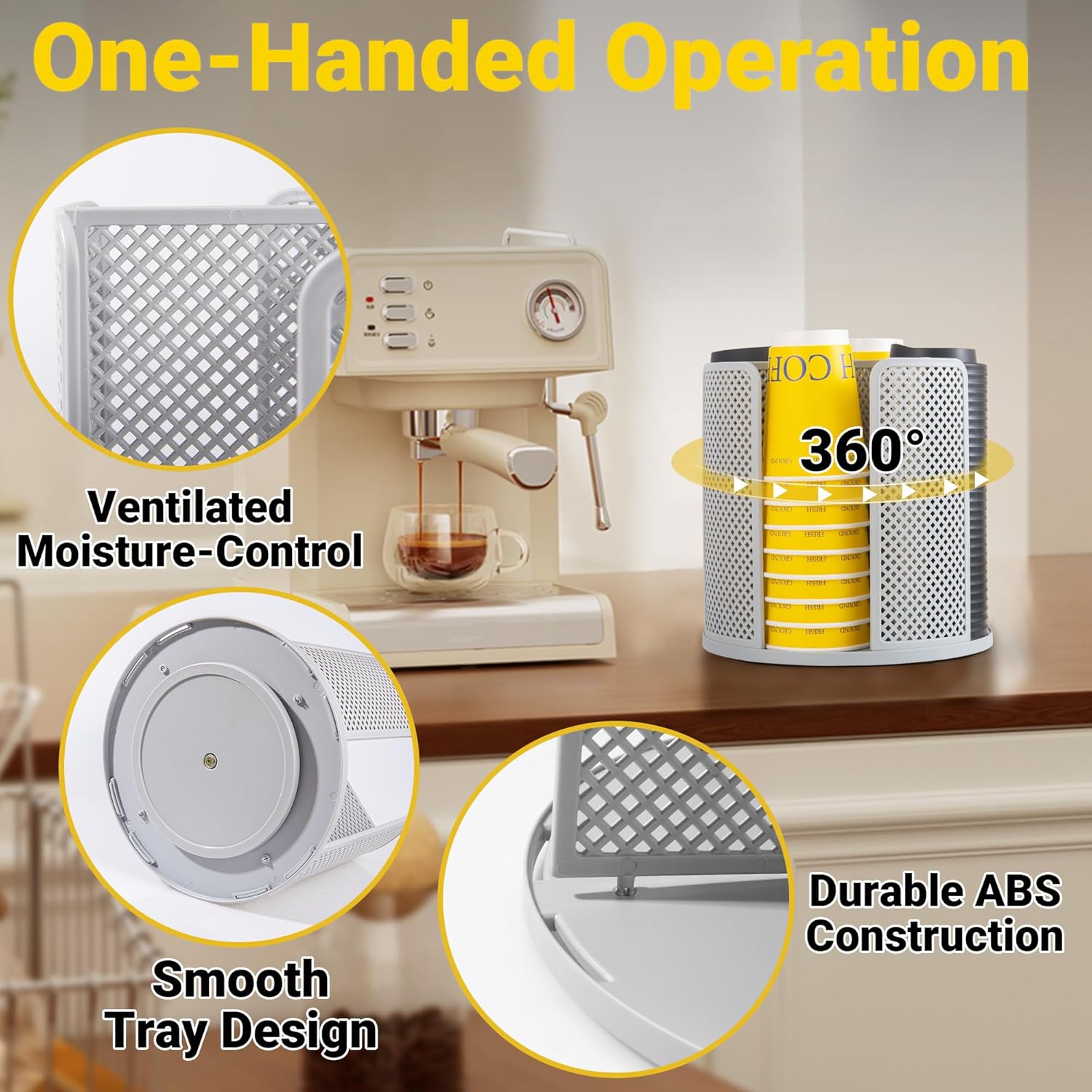 - Effortless 360° Rotation: Smooth-spinning tray provides instant, one-handed access to cups and lids in this coffee cup dispenser