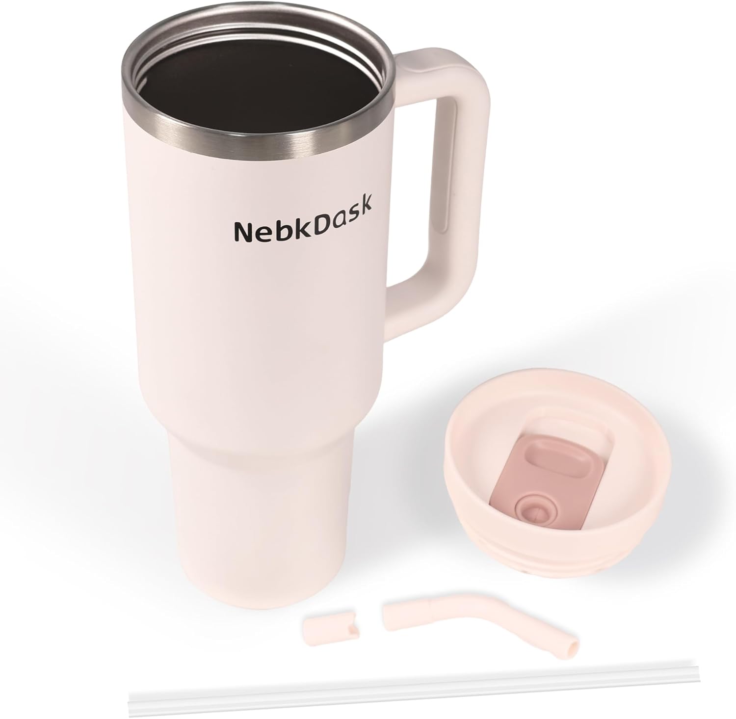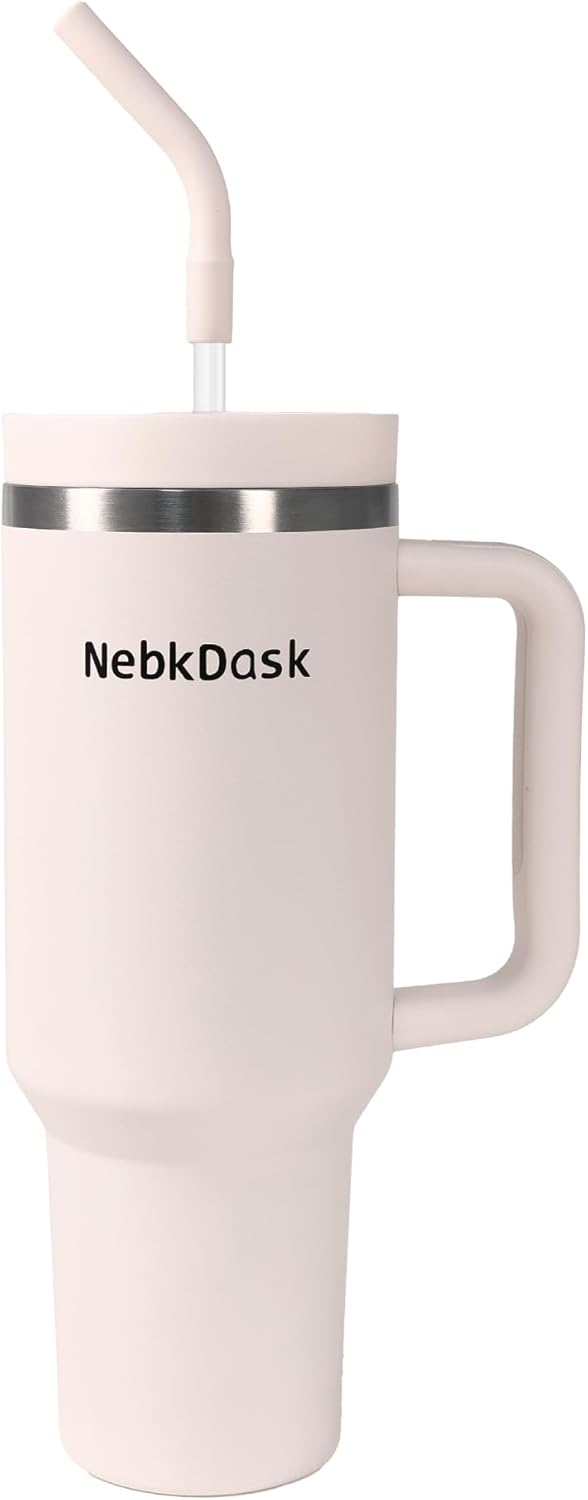 40 oz Water Bottle with Handle & Straw – Insulated Stainless Steel Bottle, Leakproof, Fits in Cup Holder – Reusable Cold Drink Thermos for Women & Men (Pink)
