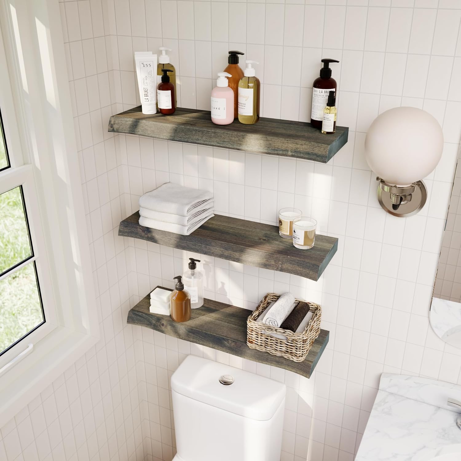 - MULTIPLE USES: Elevate your space with our versatile live edge acacia wood shelf. Well-suited for various spots like entryway, vanity, desk, or between windows. These rustic floating shelves are ideal for showcasing in the bathroom, living room, or any other area, adding both style and functionality.