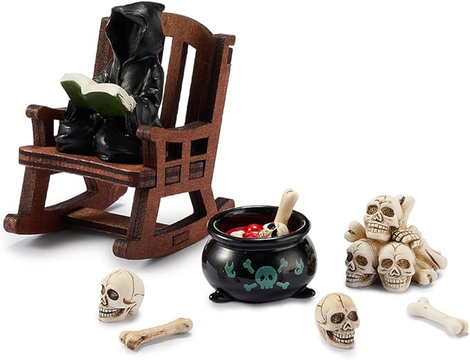 - Playfully Macabre Decor:Whimsical Halloween Figurine Mini Grim Reaper Reading Sculpture,On Your Desk, Bookshelf,Or Office Space—its Job is Bringing Quirky Charm While You Enjoy the Show.It Sneaks Unexpected Humor Into Your Dailygrind,Drawing Wry Smiles When You Least Expect it