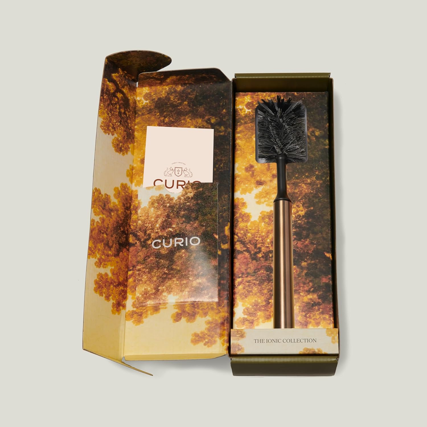 Ionic Bottle Brush, Magnetized to Stand Upright, Stainless Steel with Replaceable Head, Brass/Gold