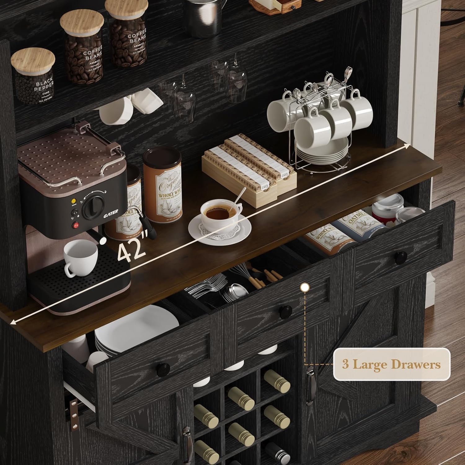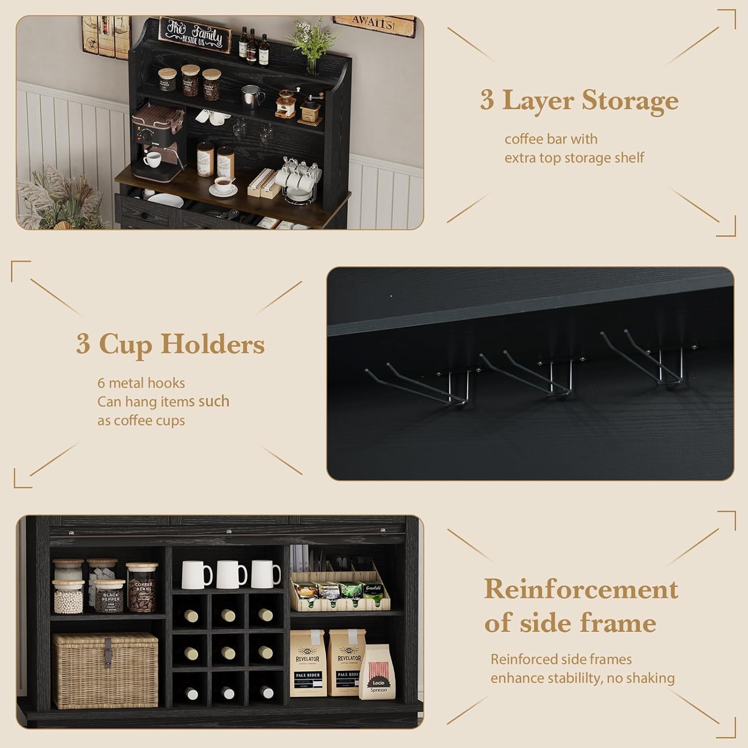 - [Large Storage Space] Coffee bar with shelves/wine racks/glass holders, fits decor, coffee machines, wines, coffee bar with drawers for small items, adjustable base cabinet shelves fit various heights