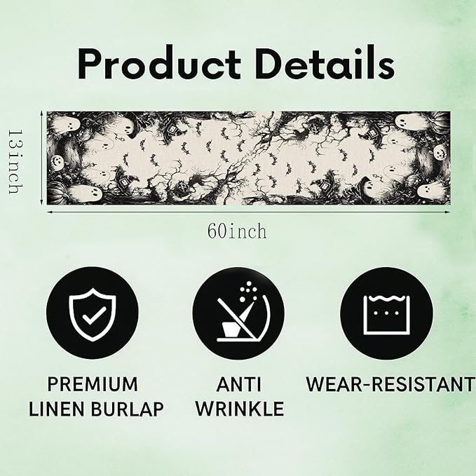 GPGHE Halloween Table Runner Black Ghost Holiday Burlap Table Decoration Indoor Outdoor Home Decor Party Supply 13 x 60 Inch