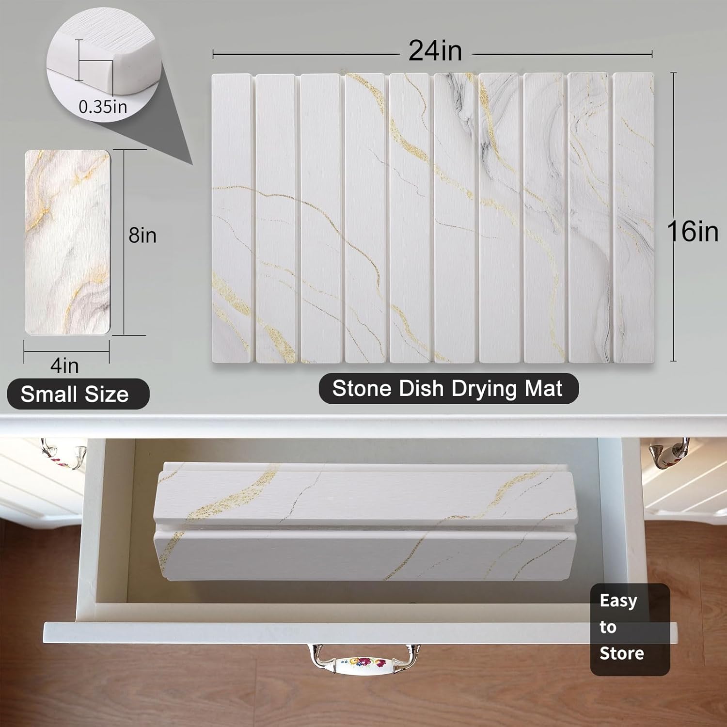 2 PCS Large Stone Dish Drying Mat for Kitchen Counter, , Marbled Water Absorbing Diatomaceous Earth Drying Pad for Countertop Bottles Utensils Cups 24"x16"& 8"x4"