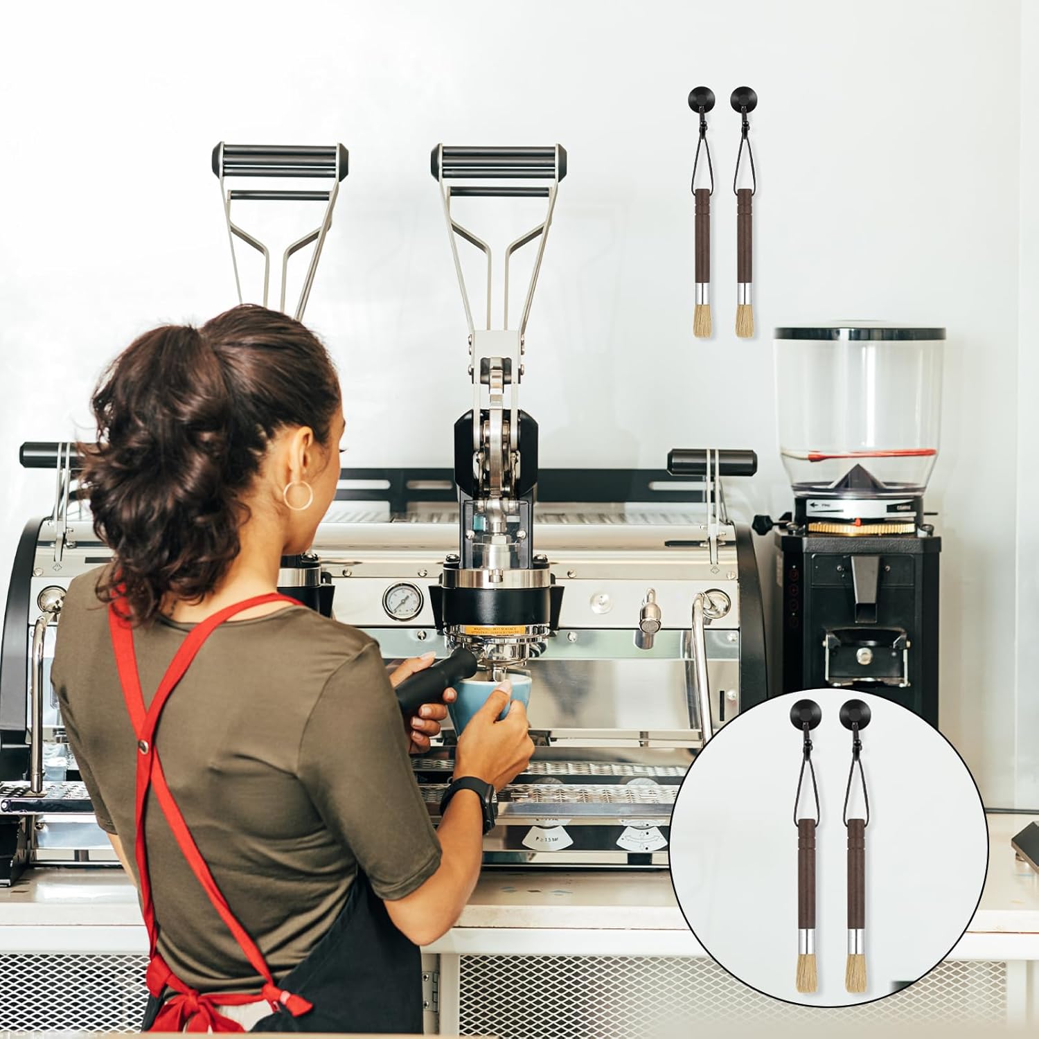 - Premium Walnut Handle: The solid wood handle is comfortable and impact-resistant. A metal press ring secures the espresso brush for long-lasting use. The polished finish enhances the aesthetics of your coffee bar.