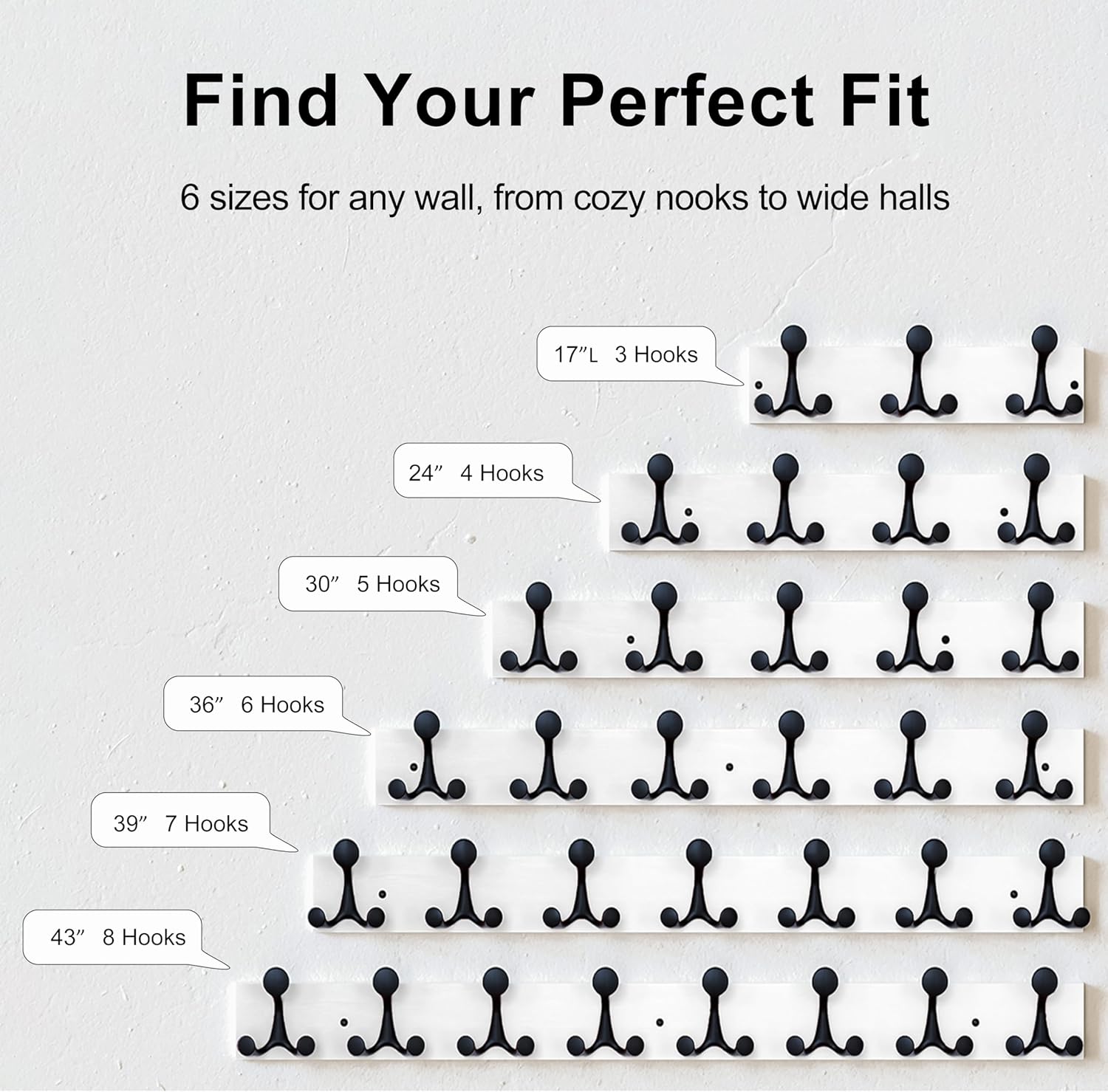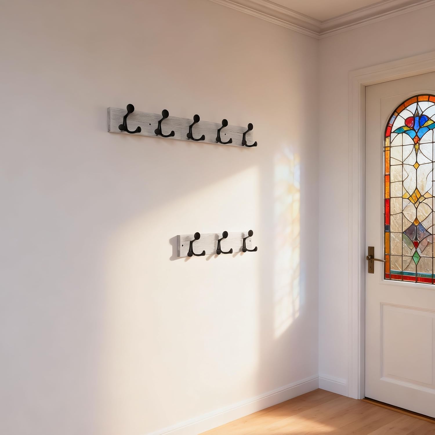 - 【Sturdiness & Large spacing】Solid wall mount coat rack with 5 triple hooks, hang 5 or 10 jackets per rack. Plenty of space to support clothes, bags, and pet supplies, making it perfect for apartment or room.