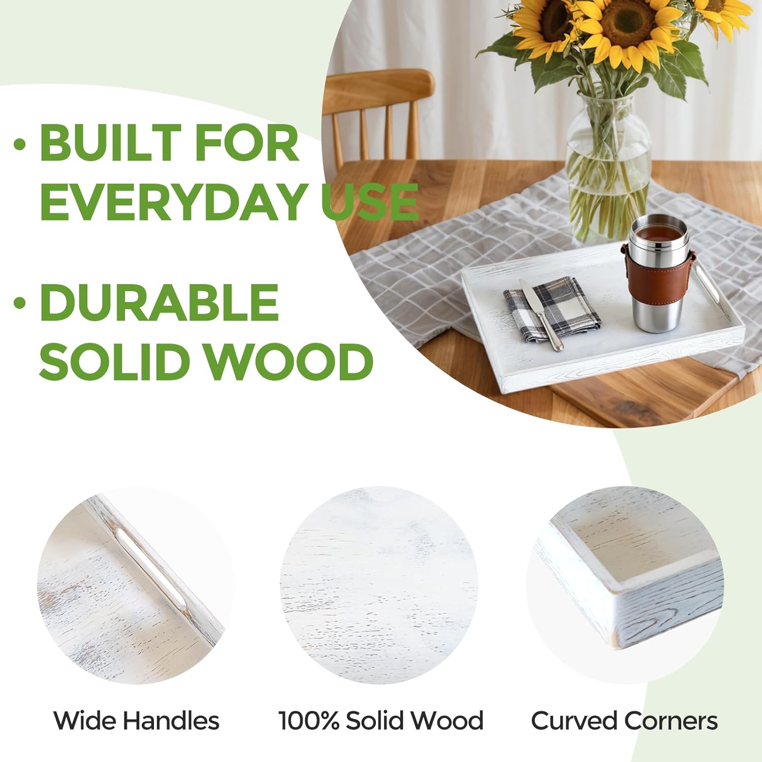 - Comfortable to Carry – Built for Everyday Use: The wooden tray for decor features ergonomically designed wide handles, carefully sanded for a smooth, splinter-free grip. Lightweight yet sturdy, it offers exceptional balance and comfort when transporting food or décor, even when fully loaded.