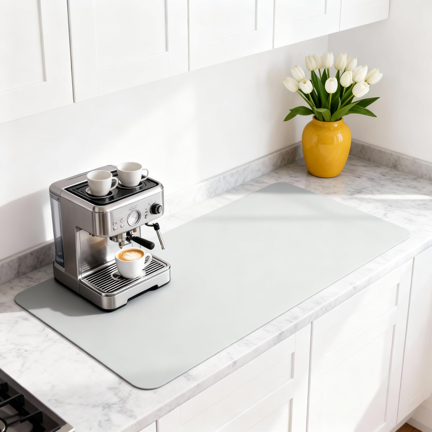 Dish Drying Mat Super Absorbent – 17" x 31" Coffee Mat for Countertops – Non-Slip Drying Mat for Kitchen Counter – Easy to Clean Water Absorbent Mat – XLarge Dish Drying Mats (Lite Gray)