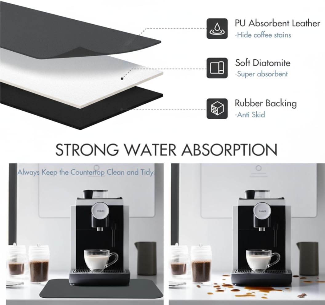 - EXCEPTIONAL ABSORBENCY: Experience the superior absorbent power of our Dish Drying Mat, designed to quickly soak up moisture from freshly washed dishes, ensuring a faster and more efficient drying process.