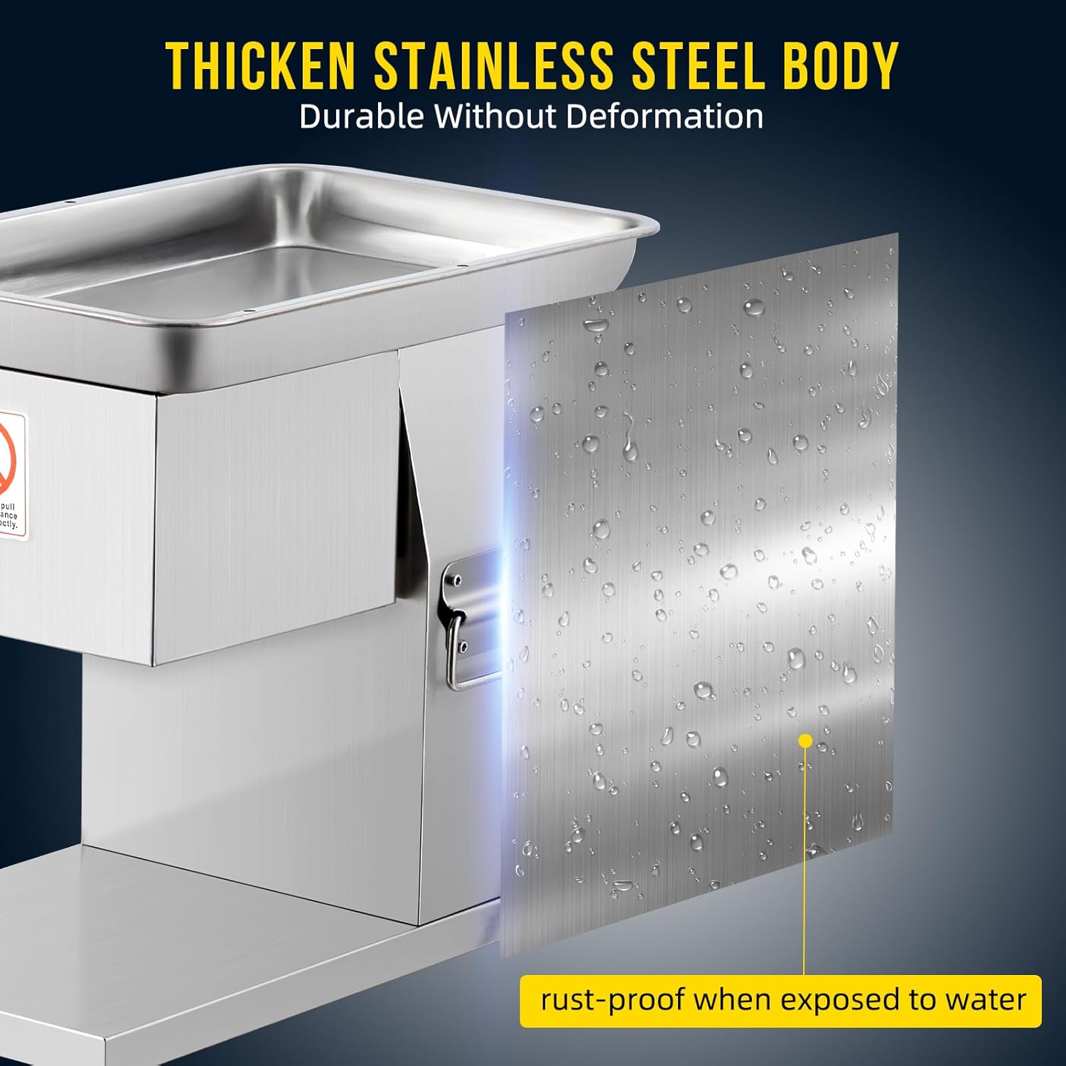 - Stainless Steel Build + Anti-Slip Base——Stable & Long-Lasting:Made of high-quality stainless steel, the meat cutter resists rust and wear, ensuring long service life even with frequent commercial use. The anti-slip rubber base keeps the machine firmly in place during cutting, avoiding accidental movement. It’s a reliable tool for home kitchens, restaurants, small businesses, farmer’s markets, and supermarkets.