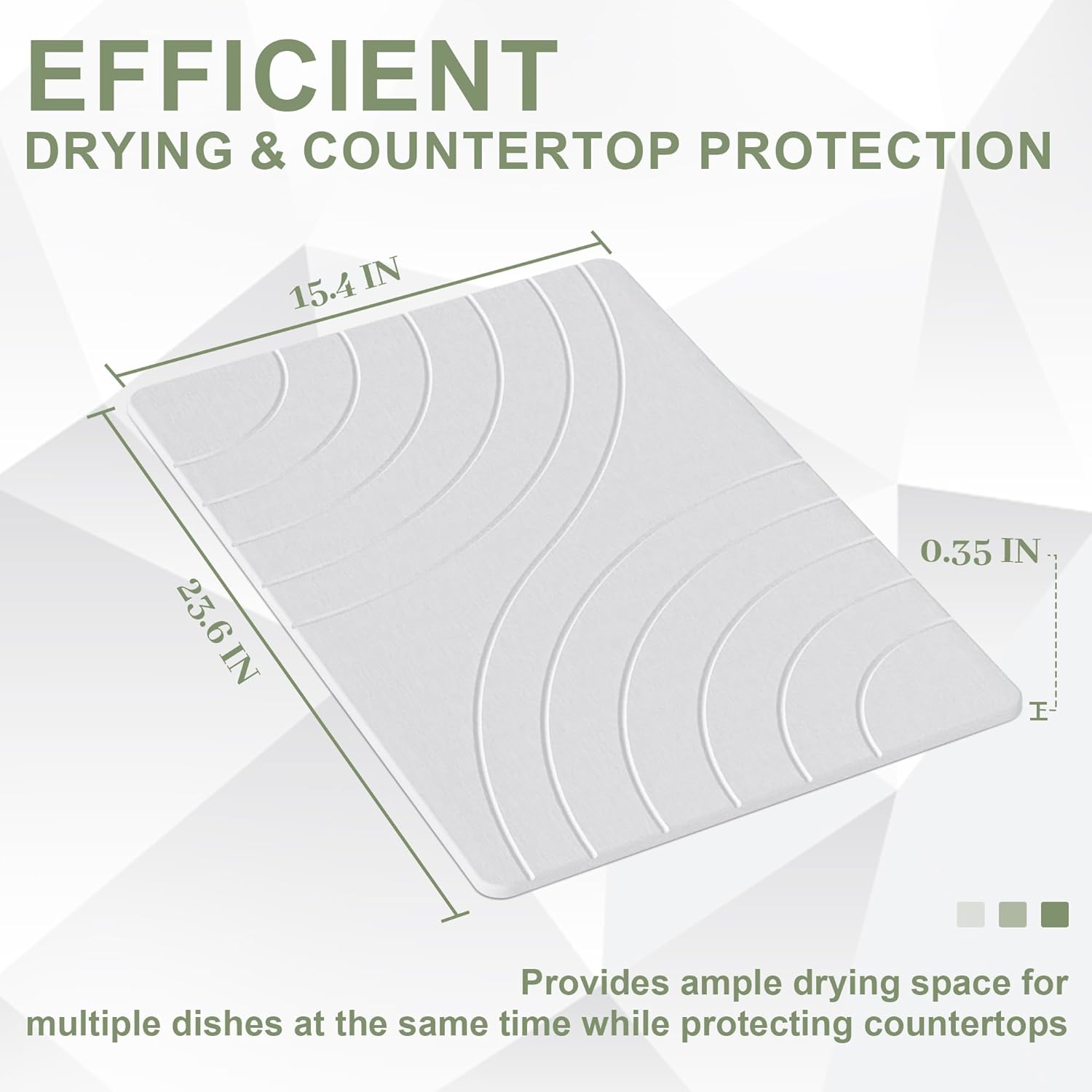Large Stone Drying Mat for Kitchen Counter, 24" × 16" Diatomite Dish Drying Mat, Quick Dry Stone Mats, Ultra Absorbent Natural Diatomaceous Earth Mats for Dished, Bottles, White